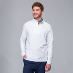 Experience the unexpected warmth of the Calibre mid-layer, a men's mid-weight quarter-zip pullover that combines enhanced functionality with refined simplicity. This garment features a mock neck topped with a durable vislon zipper and is crafted with raglan sleeves to facilitate unrestricted movement. The interior is brushed for a supremely comfortable feel. It is tailored with banded cuffs for a snug fit, engineered side panels for a streamlined look, and underarm perforated venting holes for optimal breathability, ensuring that it keeps you warm without sacrificing comfort or mobility.